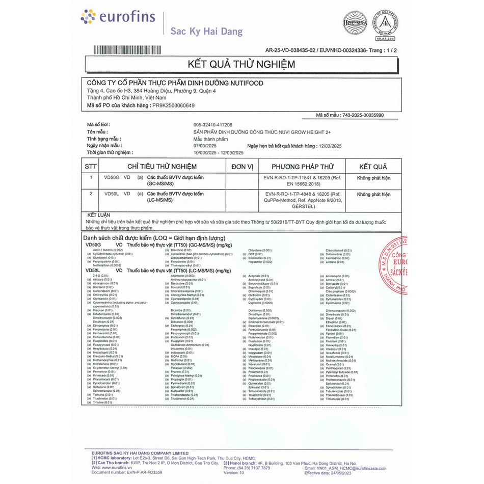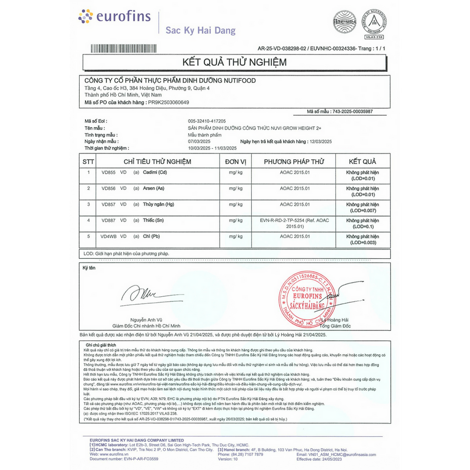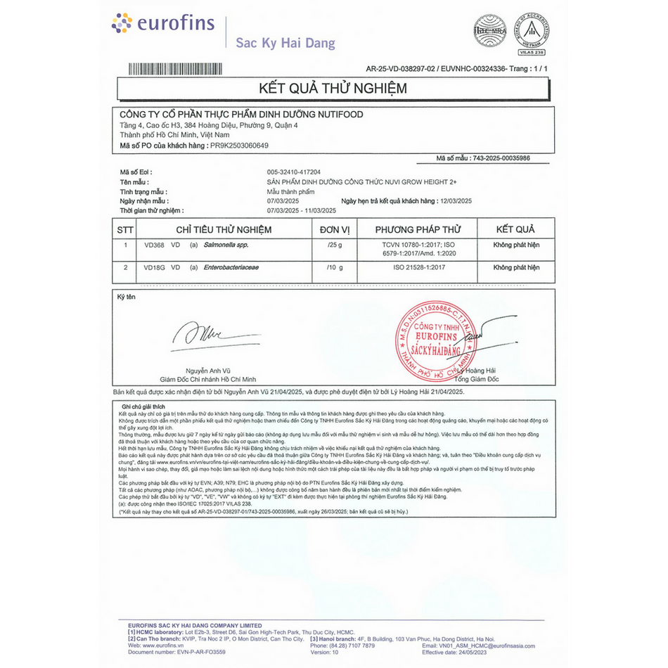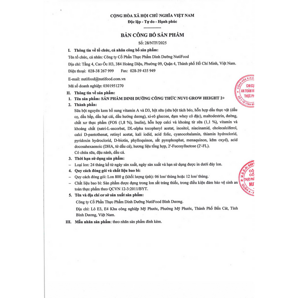 Công thức sữa của NUTIFOOD được Viện Dinh Dưỡng Quốc Gia kiểm nghiệm lâm sàng.