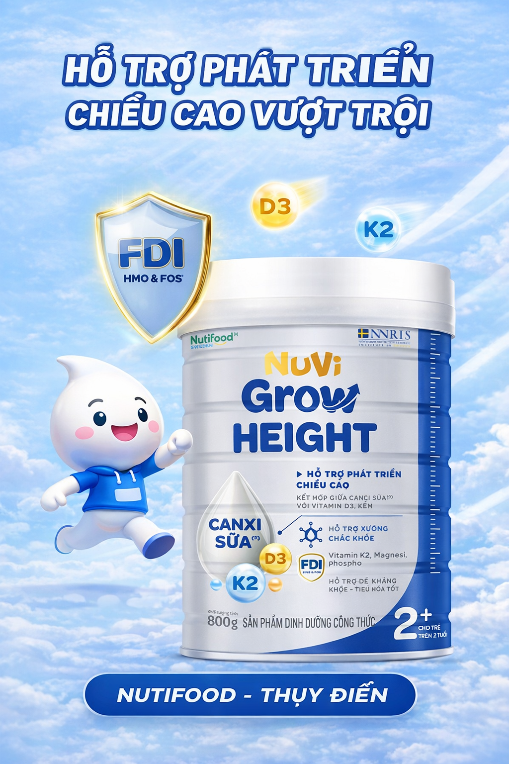 Phát triển chiều cao, hấp thụ canxi sữa tối đa